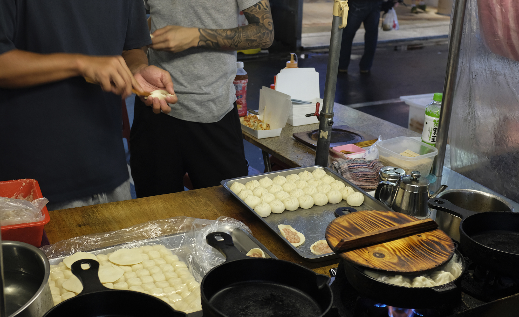 On our second or third wind (as my internal clock was telling me it was around 5 am ‘Vancouver Time’) , we were pretty hungry– the grilled chicken with cheese melted with a hand torch was delicious and deep fried squid dusted with chili spice and five spice was excellent– not greasy at all. Kei ordered me a ‘bubble tea’ and he swears to this day that there were frog eggs in it… I still refuse to believe him… perhaps that is just wishful thinking on my part. We ordered a pan of pork shumai which were cooked perfectly with a nice crust on the bottom and the pork pepper buns at the entrance of the Raohe Night Market (right to the left of the entrance– you can’t miss the stall) were great and the kind lady gave us an extra one free of charge which was sweet! They are super hot as they come out of the oven– don’t burn your mouth!
